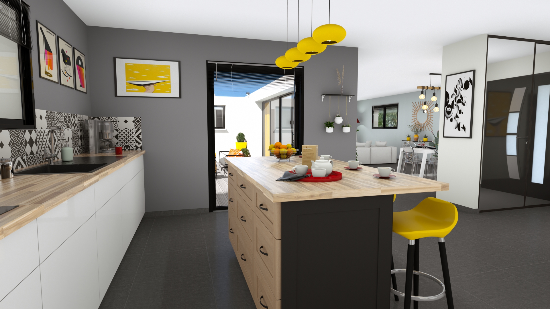 - cuisine : l’ouverture depuis la cuisine permet une circulation fluide directement sans avoir à contourner les autres pièces