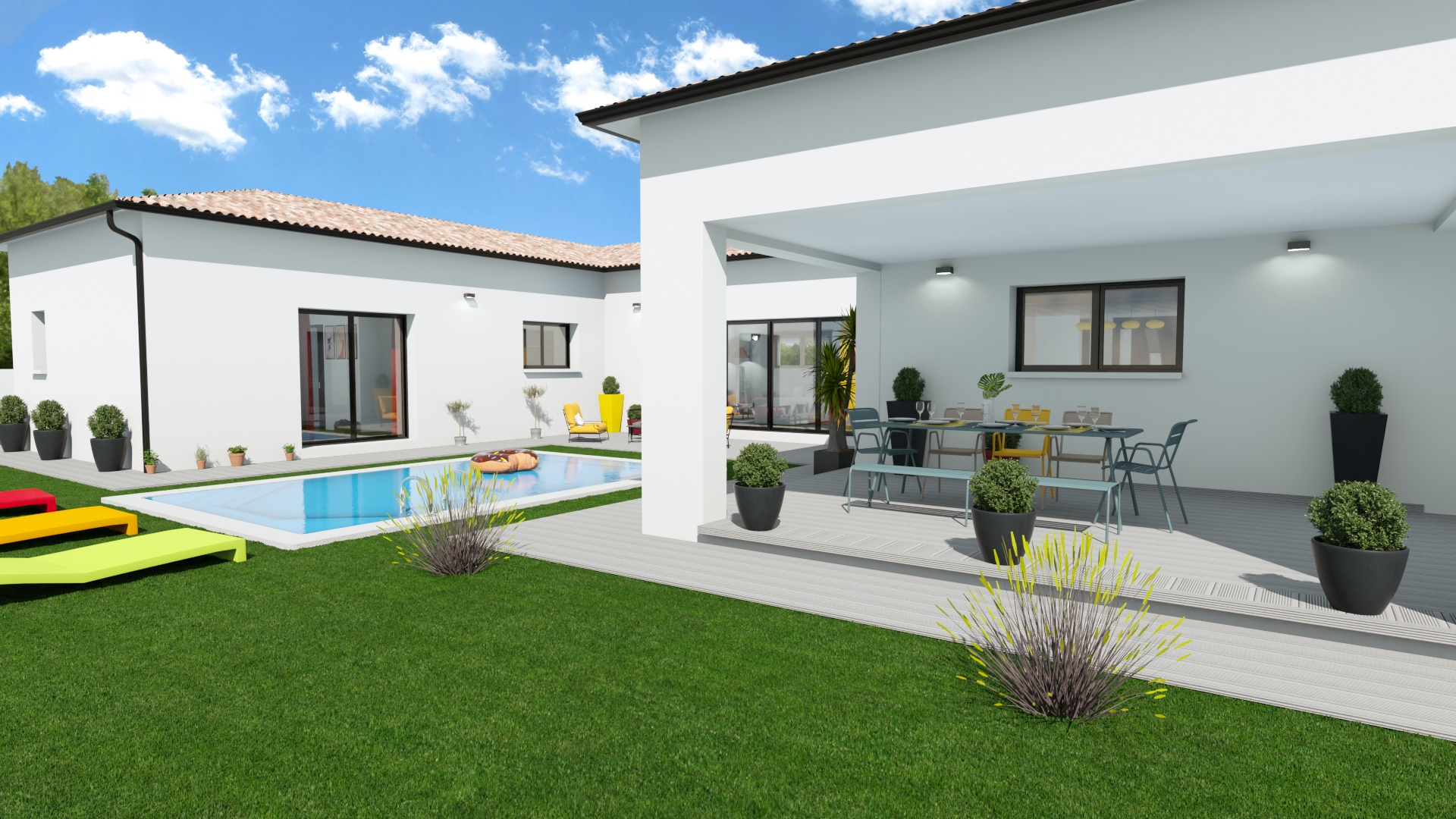 Cette villa moderne se distingue par son architecture contemporaine en forme de U. Conçue en plain-pied, elle combine intérieur spacieux et espace extérieur vaste. Le séjour central de près de 38 m² s'ouvre sur une terrasse qui s'intègre parfaitement à la configuration en U de la maison, offrant un cadre de vie ouvert et lumineux. La cuisine moderne, la suite parentale avec dressing et salle d'eau, ainsi que deux autres chambres et une salle de bains complète forment un cadre familial idéal. Un garage intégré vient compléter cette conception moderne, rendant cette villa idéale pour ceux qui cherchent confort et modernité.