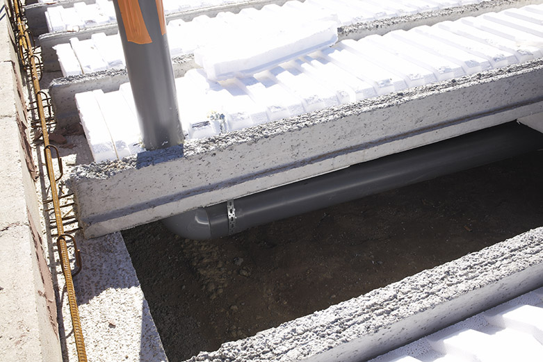 - Le plancher de la maison est composé de poutrelles bétons, hourdis de polystyrène à languette.
