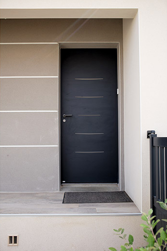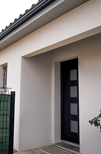 - La porte d’entrée est en aluminium avec des couleurs et modèles au choix dans la gamme des portes de chez BEL’M ou similaire.