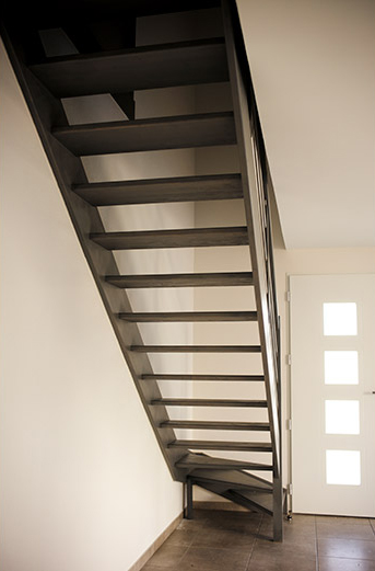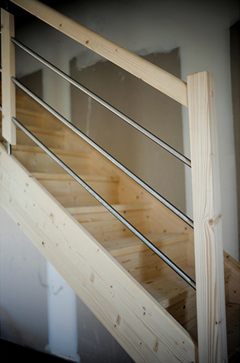 - Pour les modèles à étage, les escaliers sont en bois du nord avec un garde-corps à lisses inox fabriquées sur mesure.